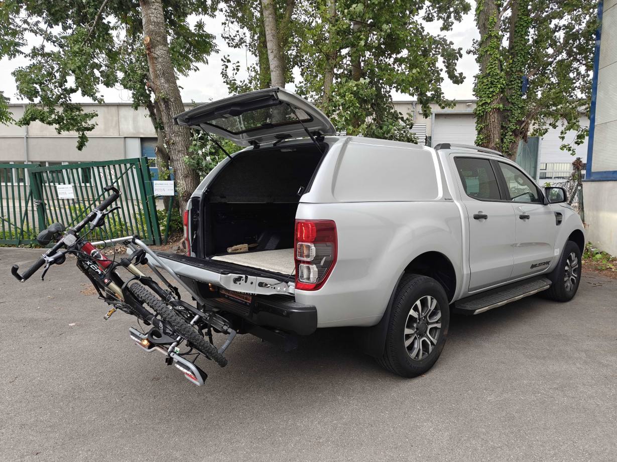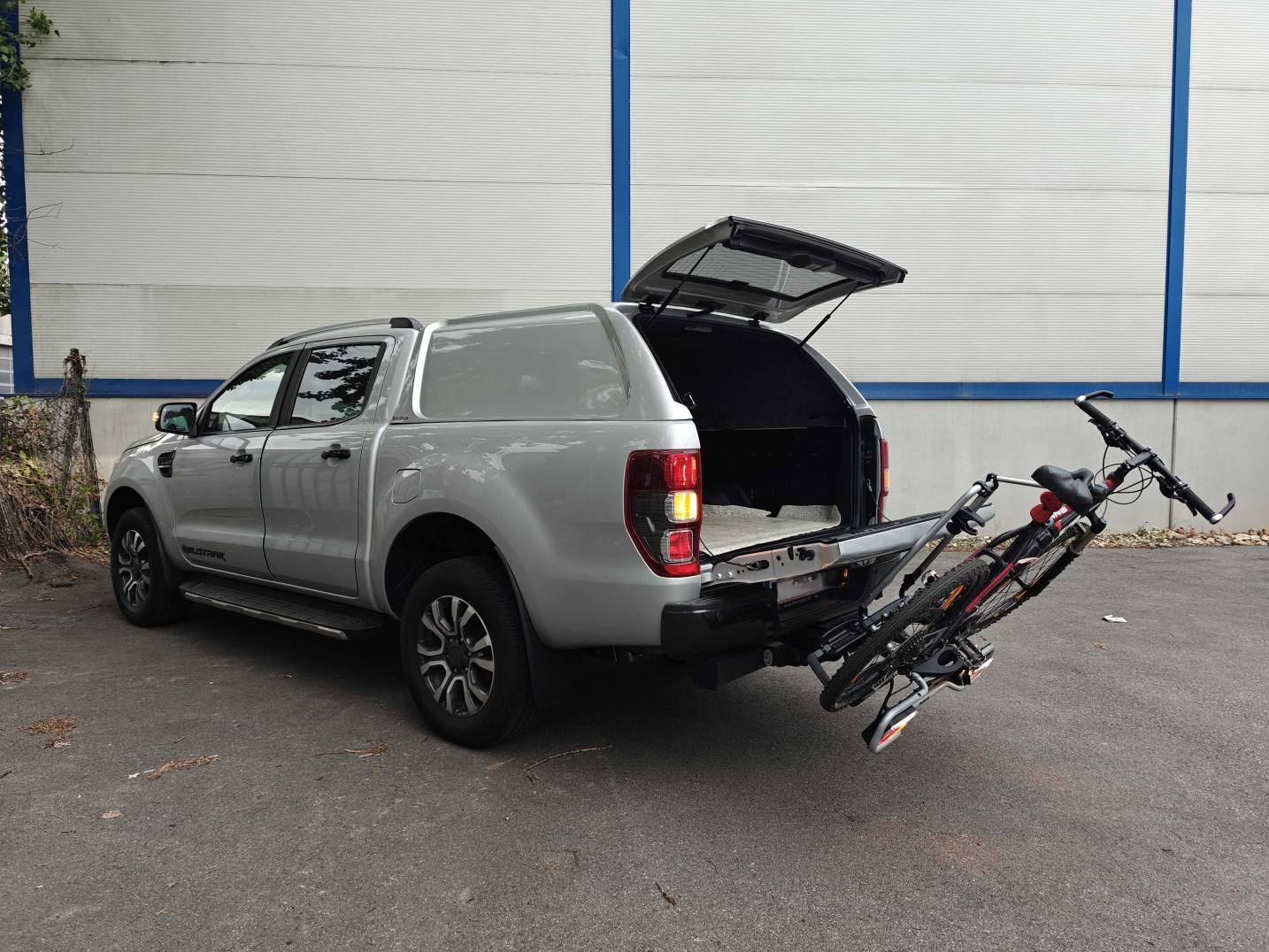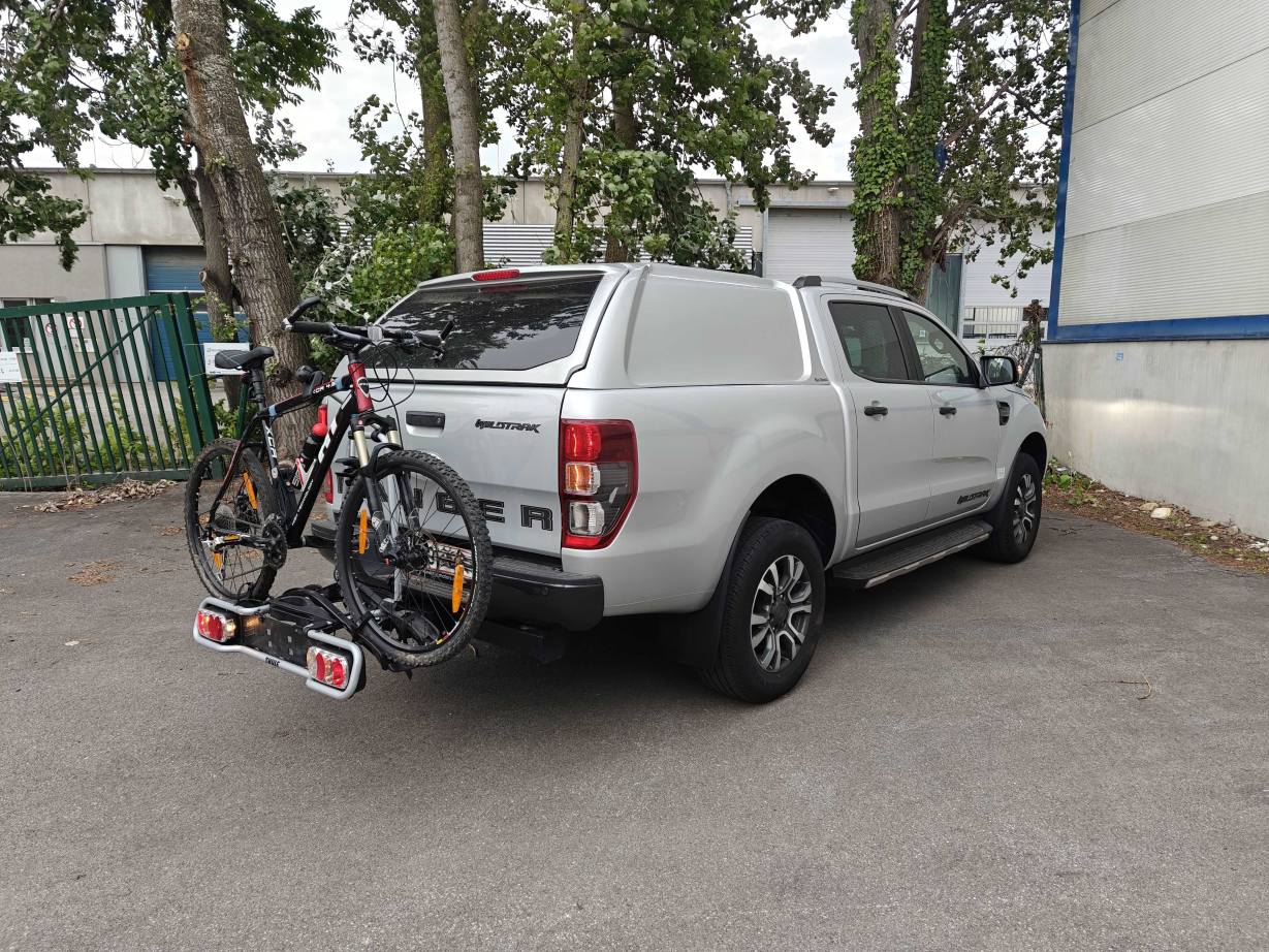 Der Fahrradträger ist versperrbar und lässt sich mit zwei Handgriffen wegklappen, sodass Sie den Kofferraum Ihres Autos erreichen können. Es können maximal zwei Fahrräder transportiert werden (Fahrrad von den Fotos nicht inkludiert). Sie/Wir können einfach Ihr Auto-Kennzeichen auf den Träger ummontieren. In Österreich ist die rote Kennzeichen-Tafel nicht verpflichtend.